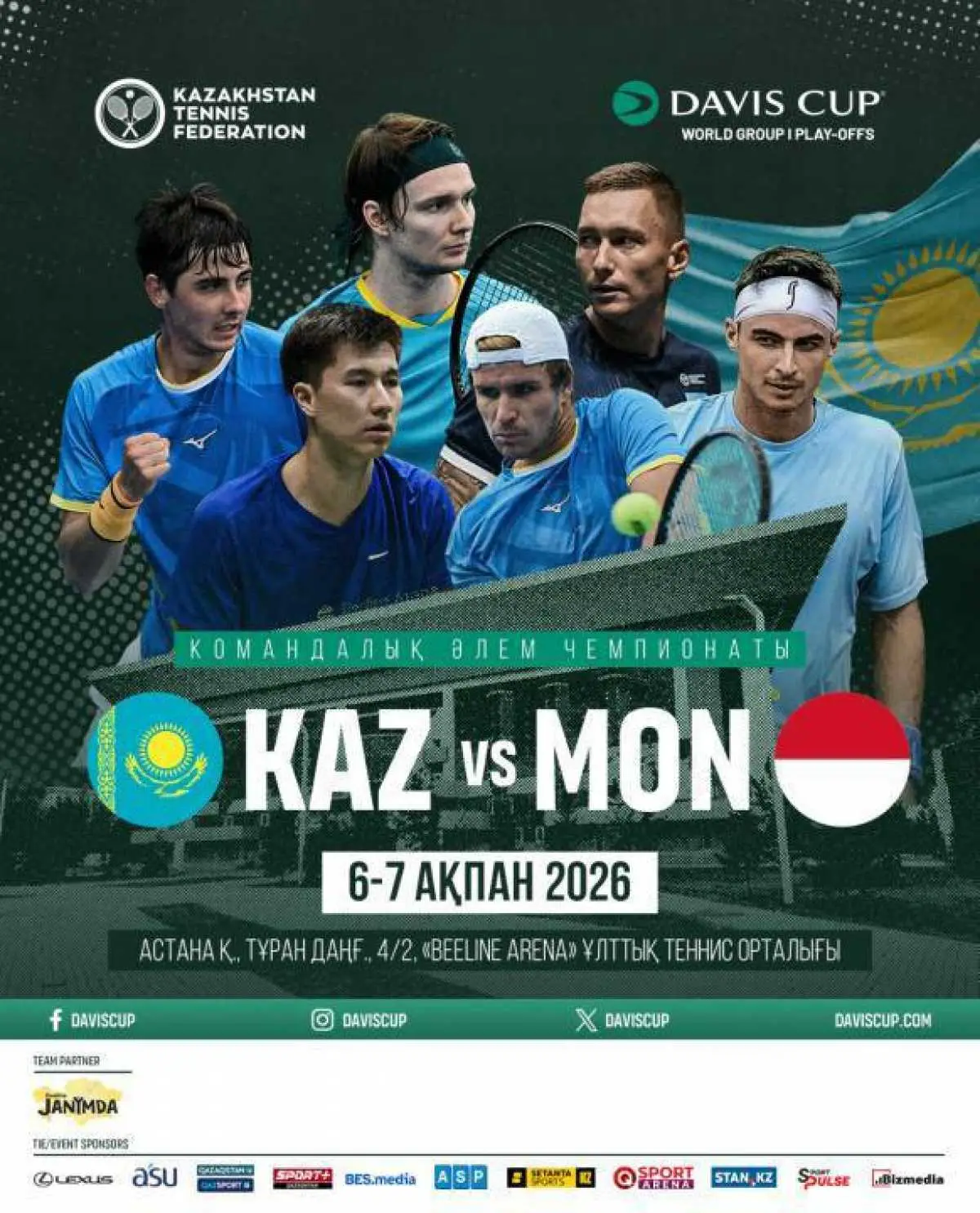 Астанада 6-7 ақпан күндері Дэвис кубогының іріктеу кезеңінің матчтары өтеді. Қазақстанның ерлер…